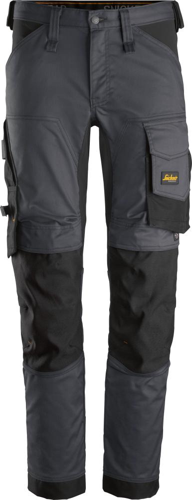 • Schlank geschnittene Hosenbeine mit 2- und 4- Wege Stretch